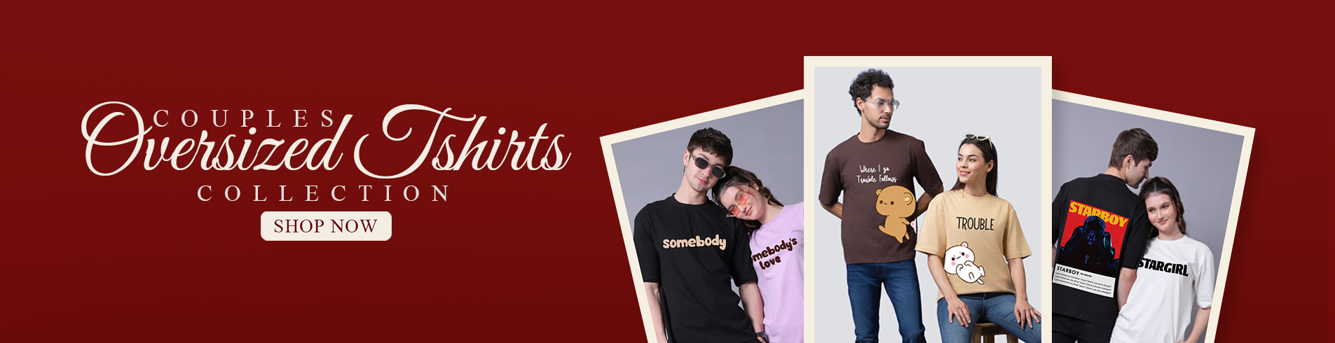 Playful Partners: 'Trouble Duo' Oversized Couple T-Shirts (Pack of 2)