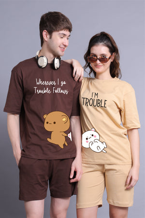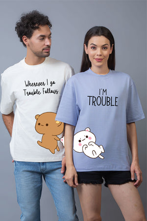 Playful Partners: 'Trouble Duo' Oversized Couple T-Shirts (Pack of 2)