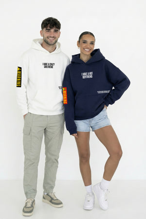 • Embrace your playful side with these adorable hoodies that feature an endearing message about the little misadventures that come with every great relationship. Perfect for couples who love to laugh and enjoy life's quirky moments together, these hoodies make a statement that's both lighthearted and affectionate.