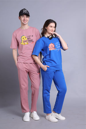• Stay effortlessly stylish with this oversized co-ord set designed for ultimate comfort. Featuring a relaxed-fit oversized tee and matching Joggers, this unisex set is perfect for couples who love coordinated fashion. Crafted from premium breathable fabric, it offers all-day ease while making a bold fashion statement. Whether you're lounging, traveling, or stepping out for a casual day, this versatile set ensures you and your partner stay in sync with trend and comfort. Perfect for every season, it’s a must-have addition to your wardrobe!