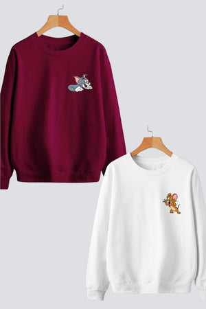 Classic Chase - Inspired by Tom & Jerry White and Maroon Unisex Sweatshirts - Pack of 2