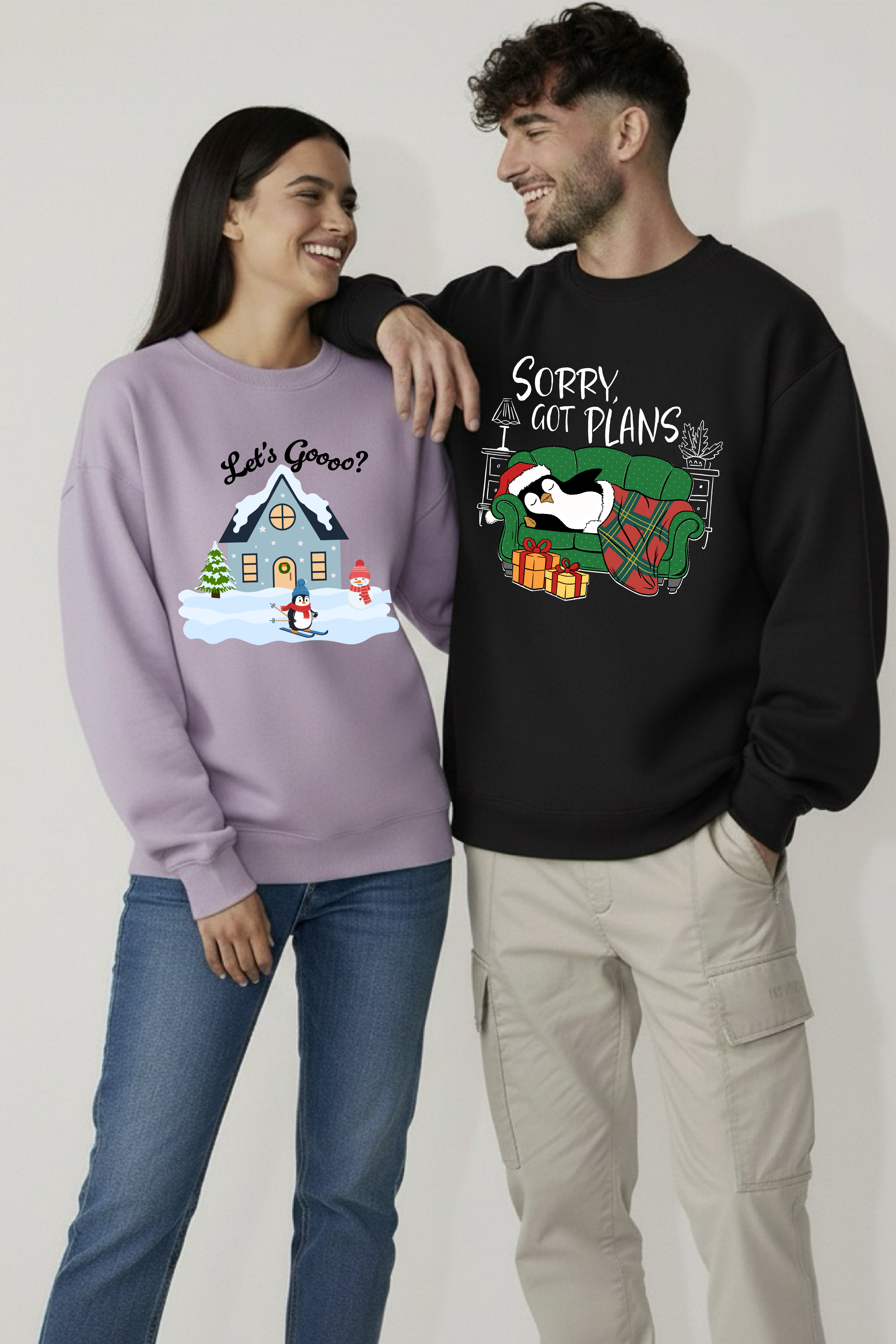 Let’s Go and Sorry Got Plans Couple Unisex Sweatshirts (Pack of 2)
