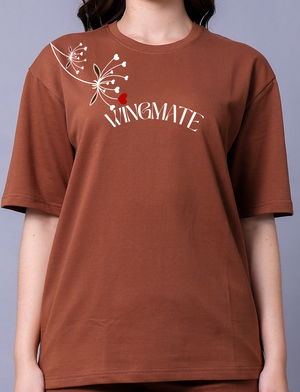 Eternal Flutter Butterfly Women Brown Co-Ord Set With Joggers