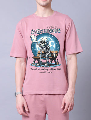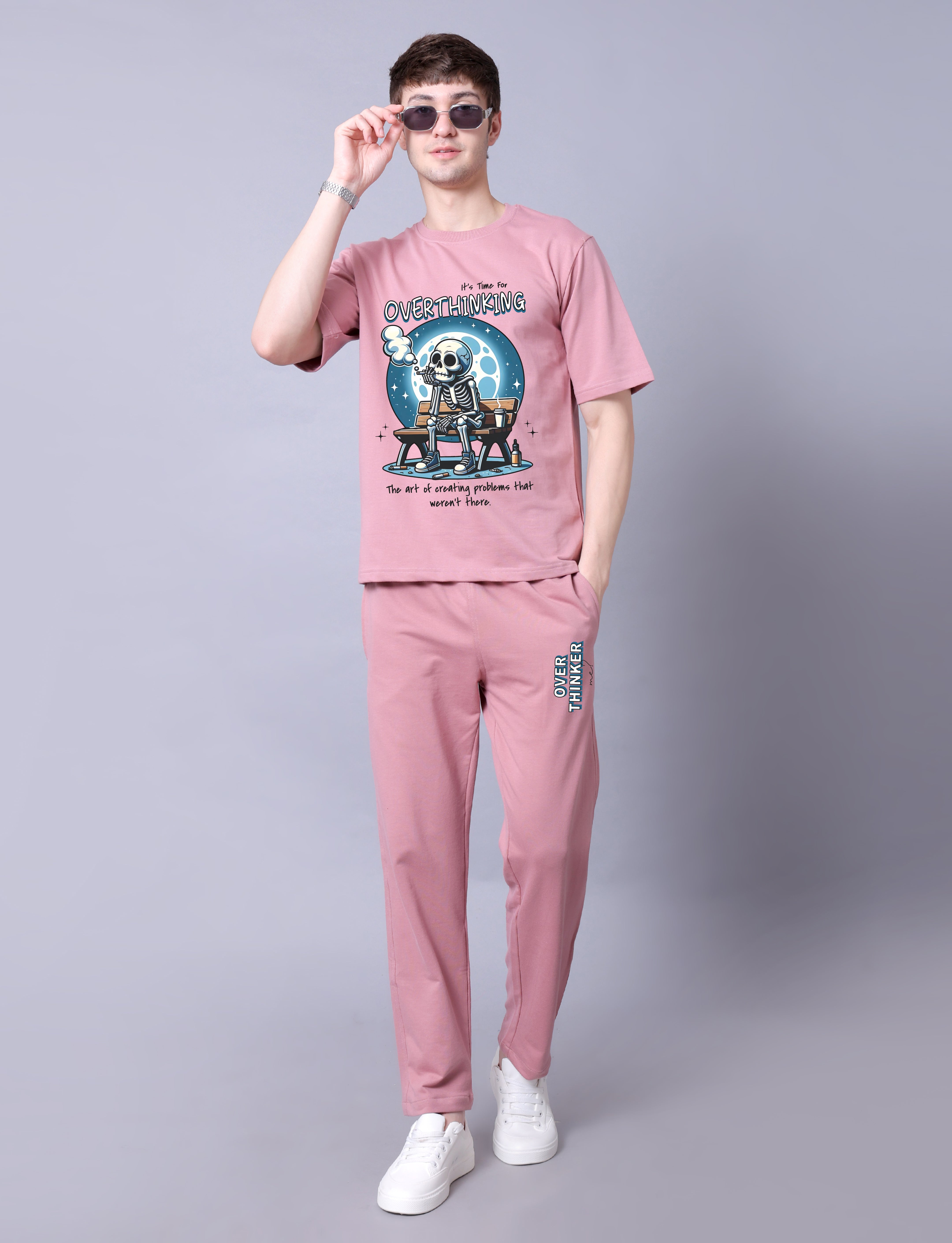 Overthinker Men Co-Ord Set - Pink Oversized Tee With Jogger